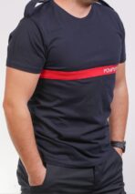 Tricou pompierii „model francez” albastru inchis cu epoleti si inscriptie la baza gatului